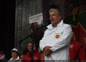 Мы собрались здесь прежде всего для того, чтобы еще раз заявить: финансово-экономический курс, проводимый правительством Путина, полностью обанкротился! Мы считаем, что без смены этого курса, без формирования правительства народного доверия, без поддержки народных предприятий ничего позитивного для простого человека быть не может! Ведь простому человеку оставили лишь безработицу, вымирание, нищую зарплату и пенсию.