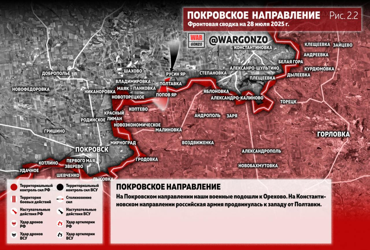 Z-телеграм-канал «Wargonzo» представляет сводку боевых действий на 28 июля 2025