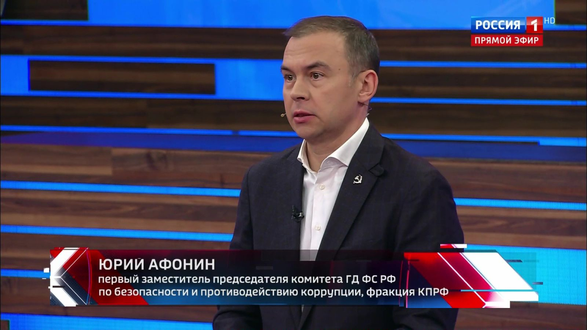 Первый заместитель Председателя ЦК КПРФ Ю.В. Афонин выступил в программе «60 минут» на телеканале «Россия-1»