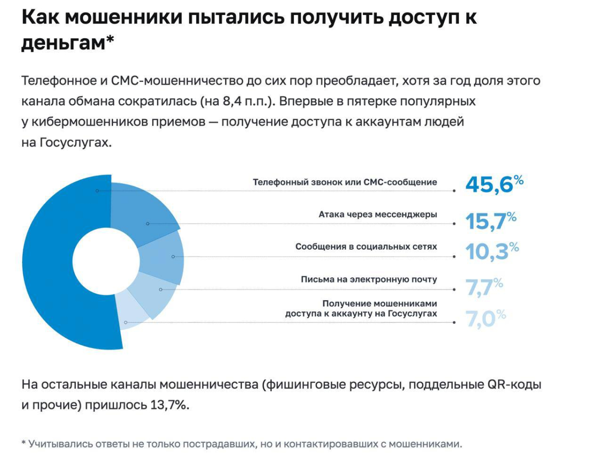 45% мошенничеств совершается через обычные звонки и SMS;