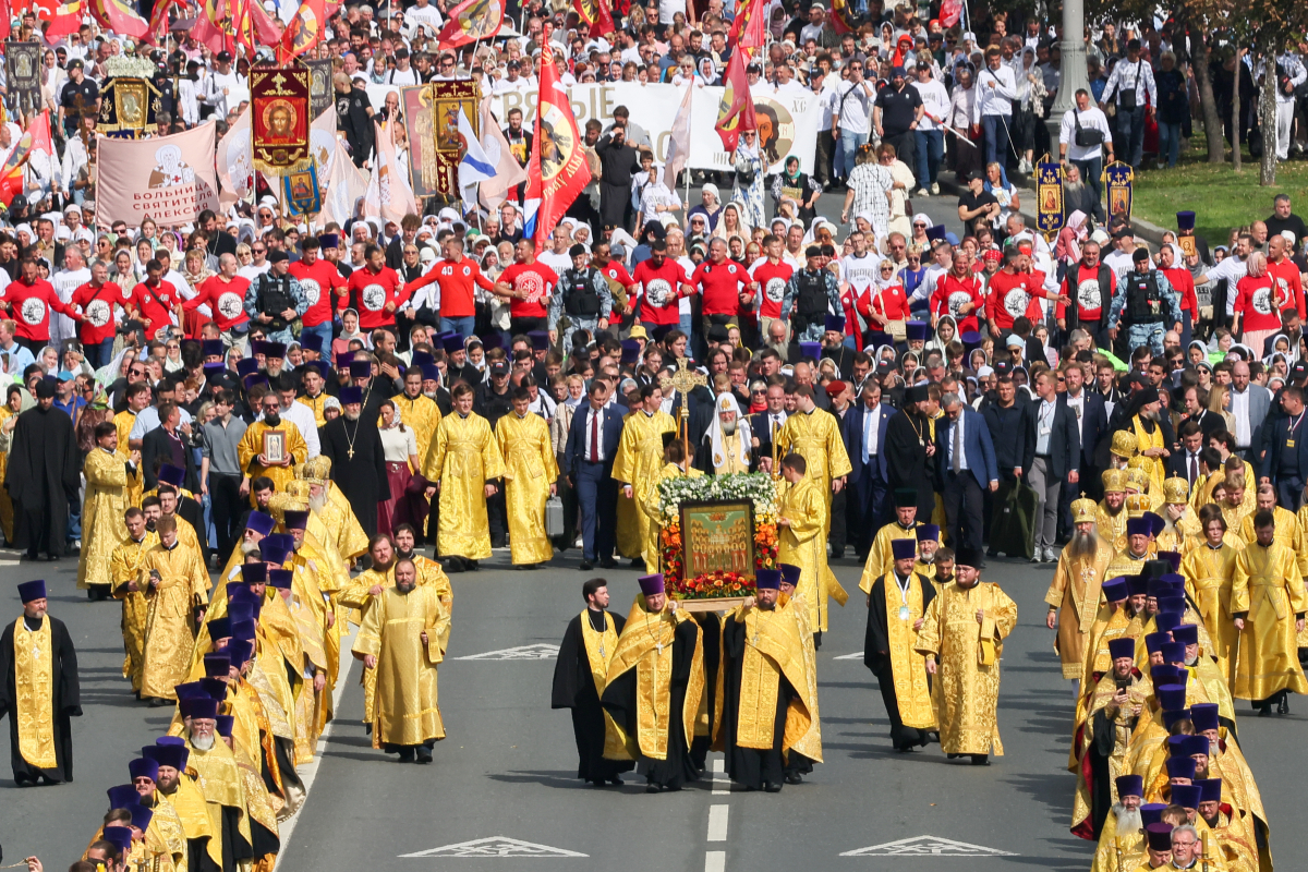 Патриарх Кирилл перед началом шествия совершил божественную литургию в храме Христа Спасителя. Он подчеркнул, что Москва сохранит свое христианское наследие, оставаясь православным городом, открытым для диалога с другими религиями.