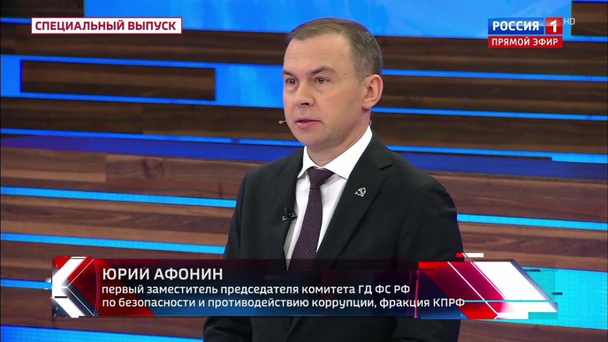Первый заместитель Председателя ЦК КПРФ Ю.В. Афонин выступил в программе «60 минут» на телеканале «Россия-1», пишет издание «КПРФ.ру».
