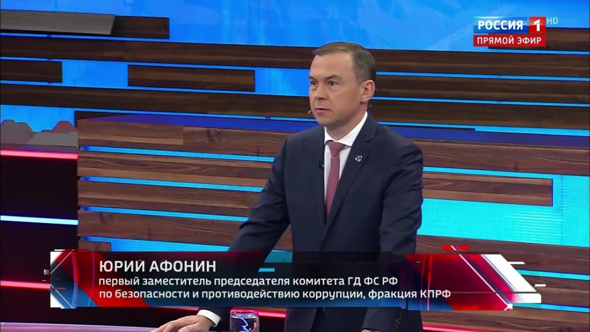 Первый заместитель Председателя ЦК КПРФ Ю.В. Афонин выступил в программе «60 минут» на телеканале «Россия-1», сообщил официальный сайт КПРФ