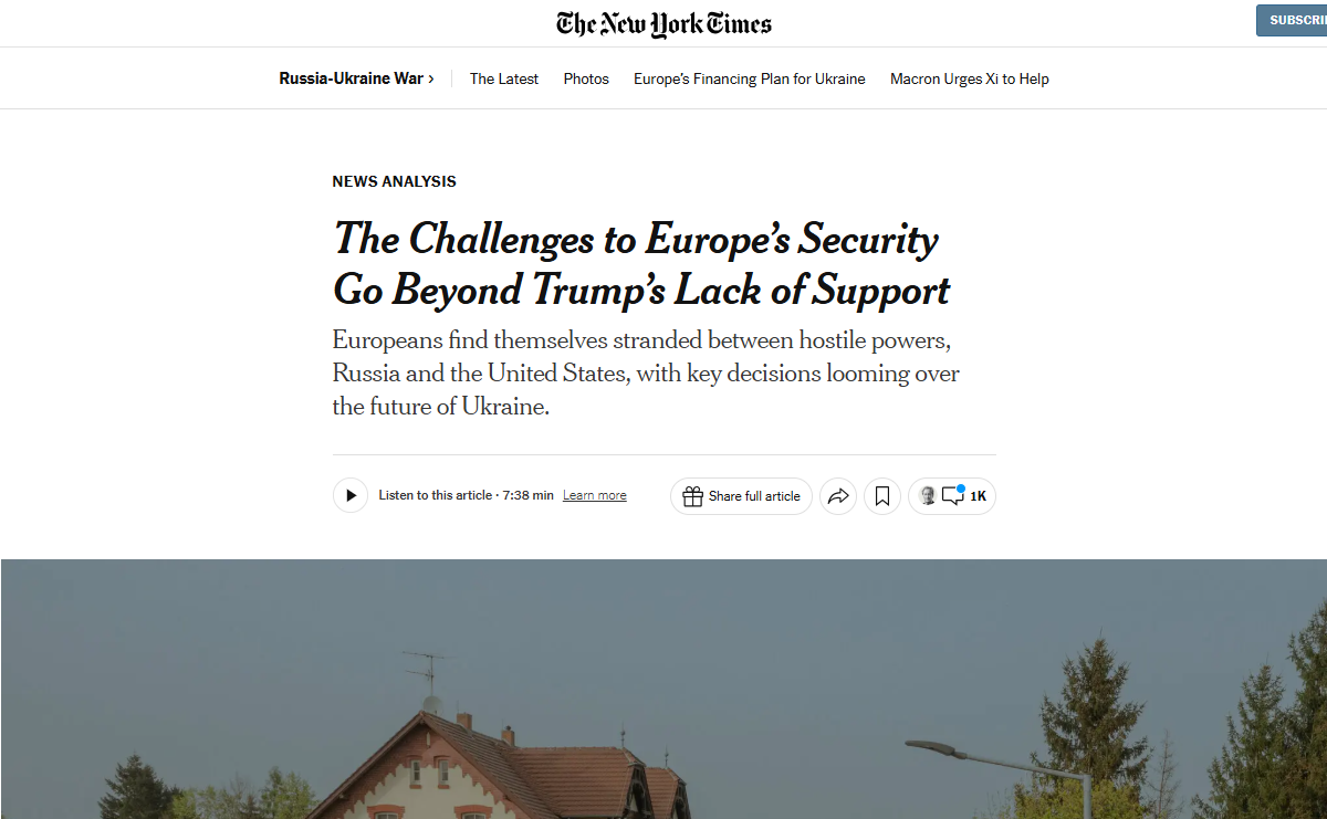 The New York Times (Нью-Йорк, США). Проблемы европейской безопасности не ограничиваются отсутствием поддержки со стороны Трампа