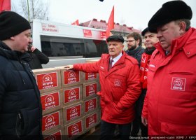 Уважаемые товарищи также мы сегодня отправляем, как всегда, груз и в воинские подразделения. Это головная часть груза. К нашим машинам присоединятся машины и с Северного Кавказа, Поволжья, Воронежа и со Ставрополья. Такие большие, мощные конвои – свидетельства нашей с вами большой системной работы, которую проводит КПРФ.